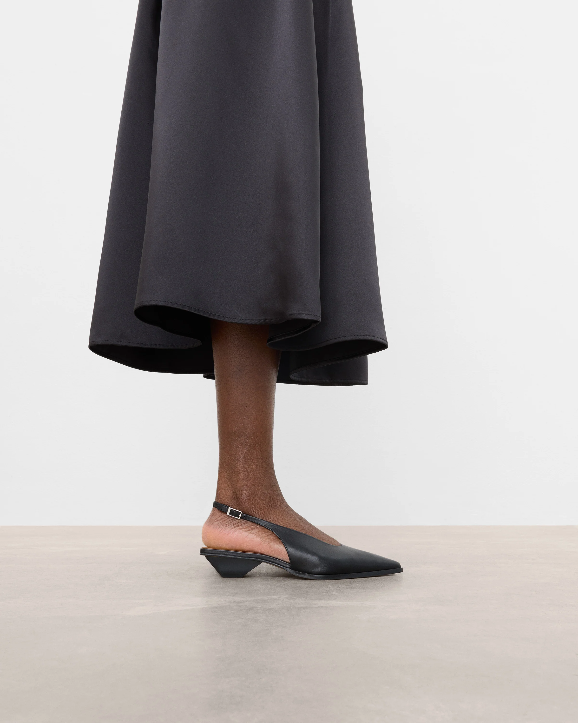 The Slingback Pump with a sleek pointy toe and a unique heel shape.