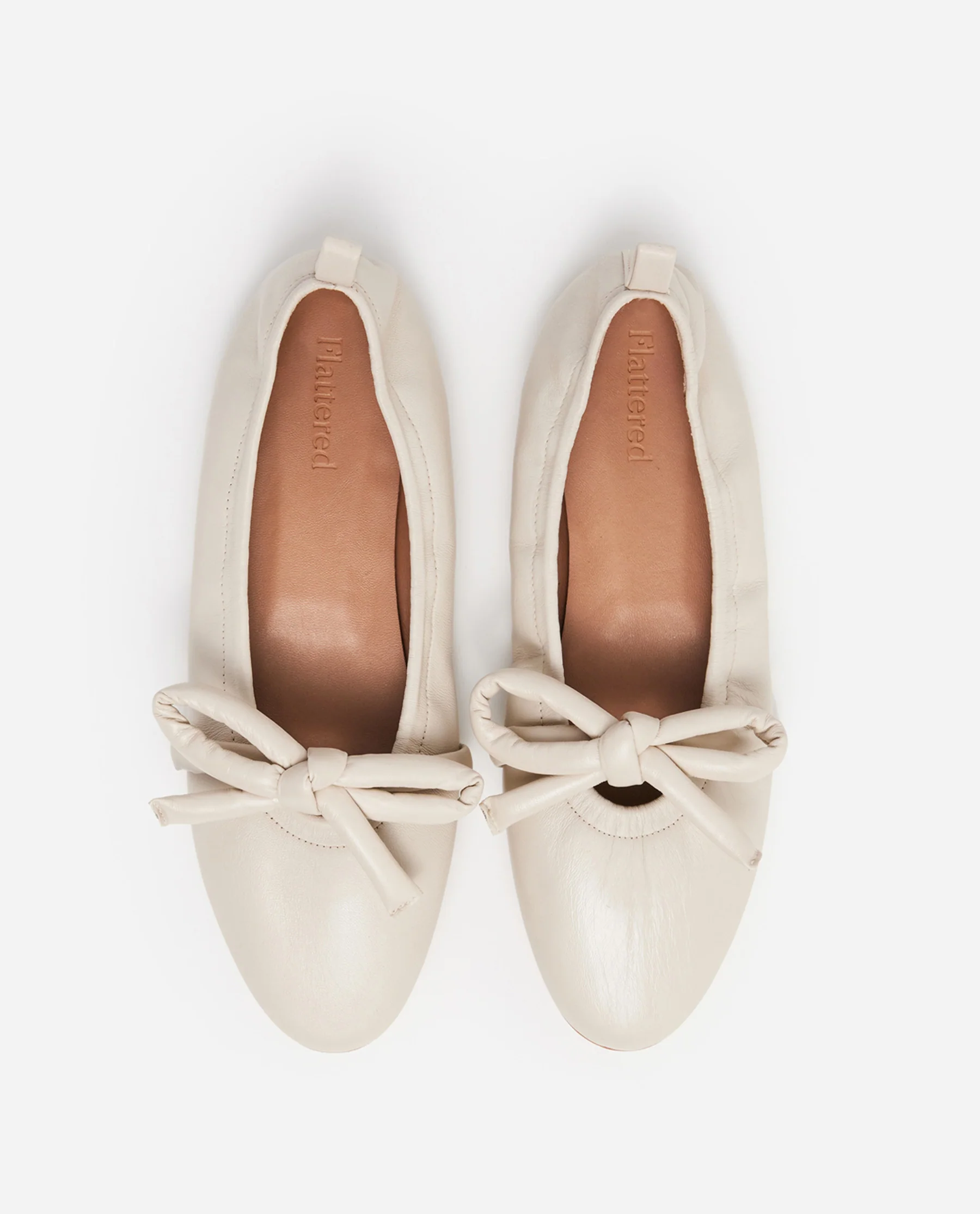 A classic ballet flat with an elastic band that runs through the binding and creates a gathering while ensuring a neat fit. Embellished with a padded knot.